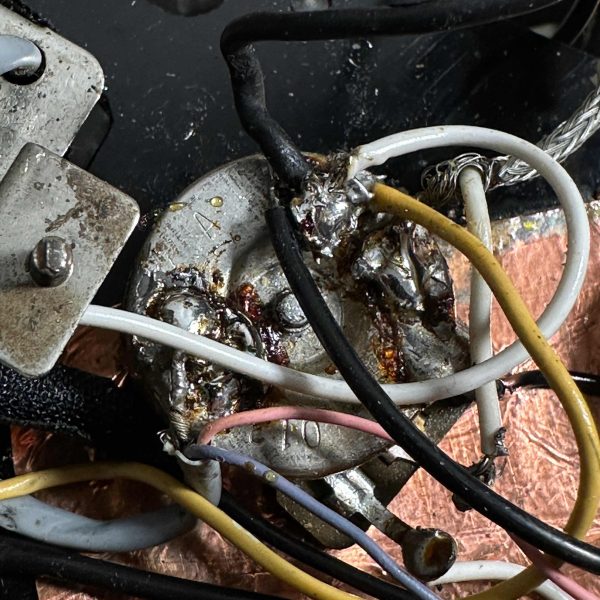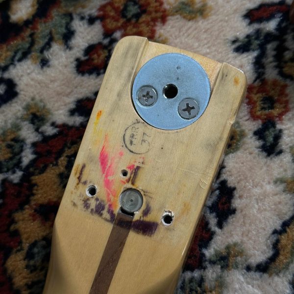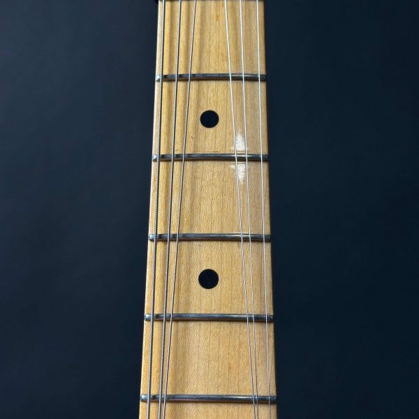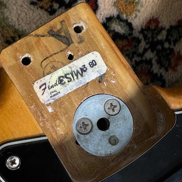 Die absolute Players Choice bei uns im Laden! Diese 79er Strat musste schon einiges mitmachen: getauschte Mechaniken, Tremolo und Tremolohebel sind nicht original und eine Poolfräsung hat sie auch noch. Aber mit der HSS Konfiguration belohnt sie mit einem sensationell vielseitigen Sound, den wir hier selten hatten!