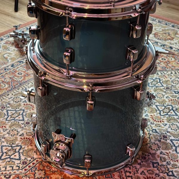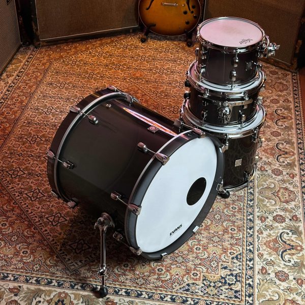 Zum Verkauf steht ein Kirchhoff Acryl Drumset im Finish Anthrazit. Das Set besteht aus transparent getönten Acryl-Kesseln und bietet eine markante Optik mit dunkler, leicht durchscheinender Oberfläche.